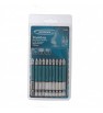 Zestaw składający się z dziesięciu bitów został zapakowany w pudełko z folii sztywnej, termoformowalnej (double blister).