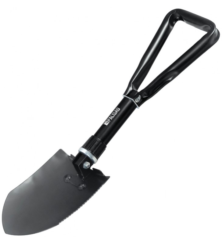 Łopatka uniwersalna składana ze spiczastą łyżką metalową 150 x 200 mm i składanym 2-sekcyjnym trzonkiem metalowym 380 mm.