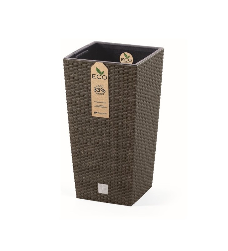 Wykonane z wysokiej jakości tworzywa sztucznego, odpornego na warunki atmosferyczne oraz promienie UV. Dodatkowo doniczki z tej wersji, zawierają aż do 33% naturalnego drewna, ze względu na zaawansowaną technologie recyklingu odpadów naturalnych. Produkt z przeznaczeniem do wewnątrz oraz na zewnątrz budynków.