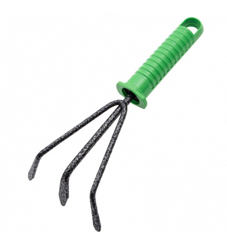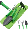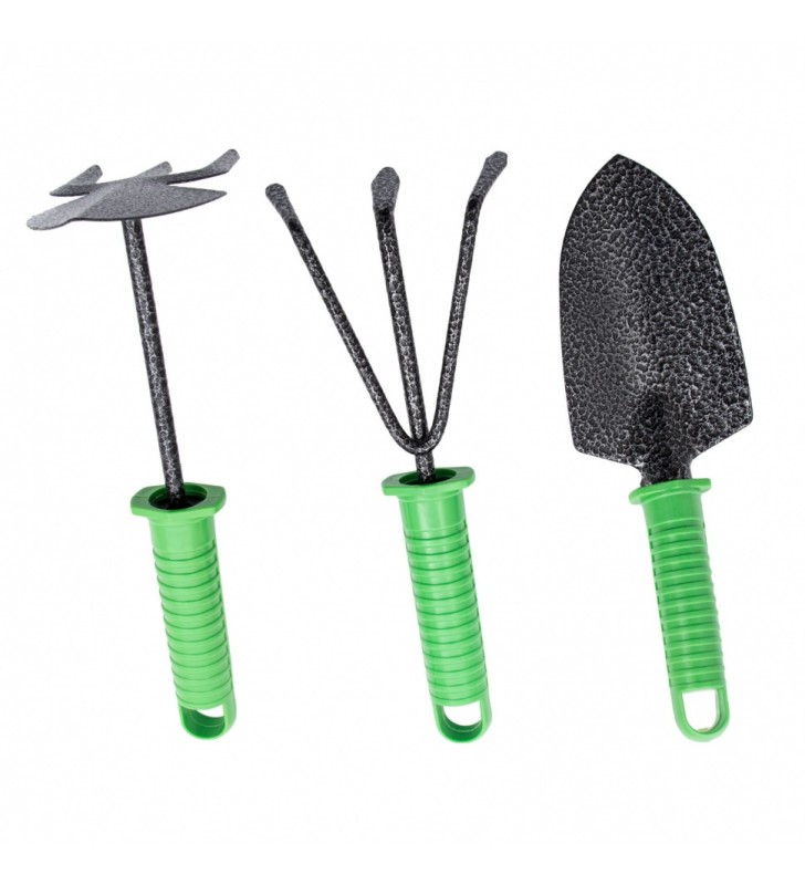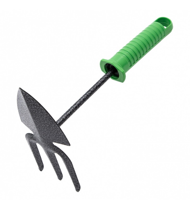 Zestaw narzędzi ogrodowych składa się z 4 elementów - połączonej motyki, czerpaka i spulchniacza z plastikowymi uchwytami oraz nakładki na kolana. Narzędzia są wykonane ze stali węglowej i pokryte emalią młotkową, która jest odporna na korozję, dzięki czemu są mocne i trwałe. Podkładka pod kolana jest odporna na promieniowanie UV i wilgoć, dzięki czemu posłuży przez długi czas. Zestaw przydatny dla miłośników ogrodnictwa.