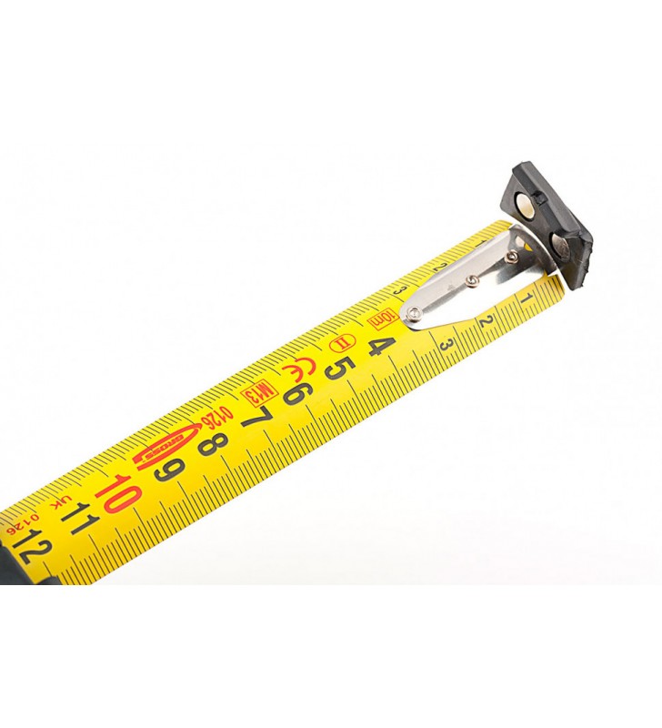 Podstawa taśmy pomiarowej wyposażona jest w powlekany gumą zaczep magnetyczny True Zero który pozwala nie tylko na blokadę na powierzchniach równych, lecz również na zaokrąglonych (np. na rurach).