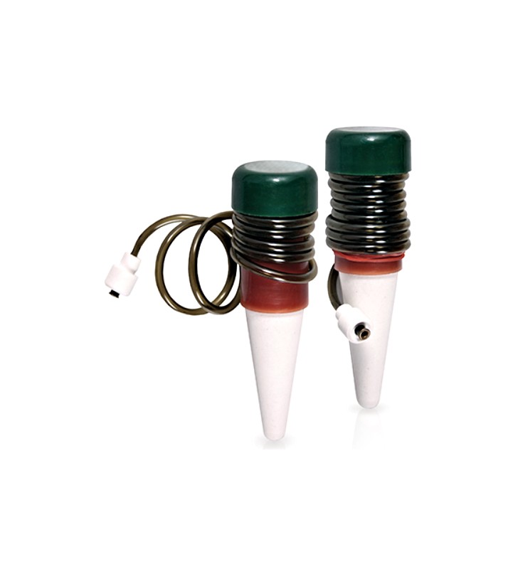 Ziemia zostaje zwilgocona poprzez wbity w nią stożek, woda pobierana jest przez rurkę ze zbiorniczka stojącego obok.