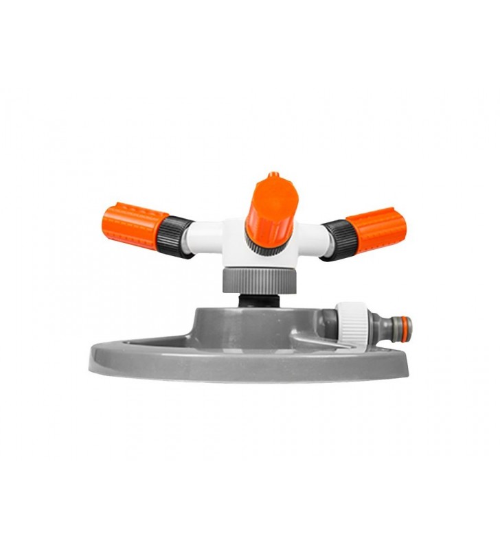 Zraszacz prezentowany na naszej aukcji ma możliwość regulowania kąta ustawienia ramion (zmiana zasięgu zraszania). Równomierne zraszanie zapewni rotacyjny ruch ramion. Zasięg to aż 10,4M, a obszar zraszania do 85m2. Jest ergonomiczny, a jego lekka konstrukcja pozwala na wygodne przestawianie urządzenia w dowolne miejsce.