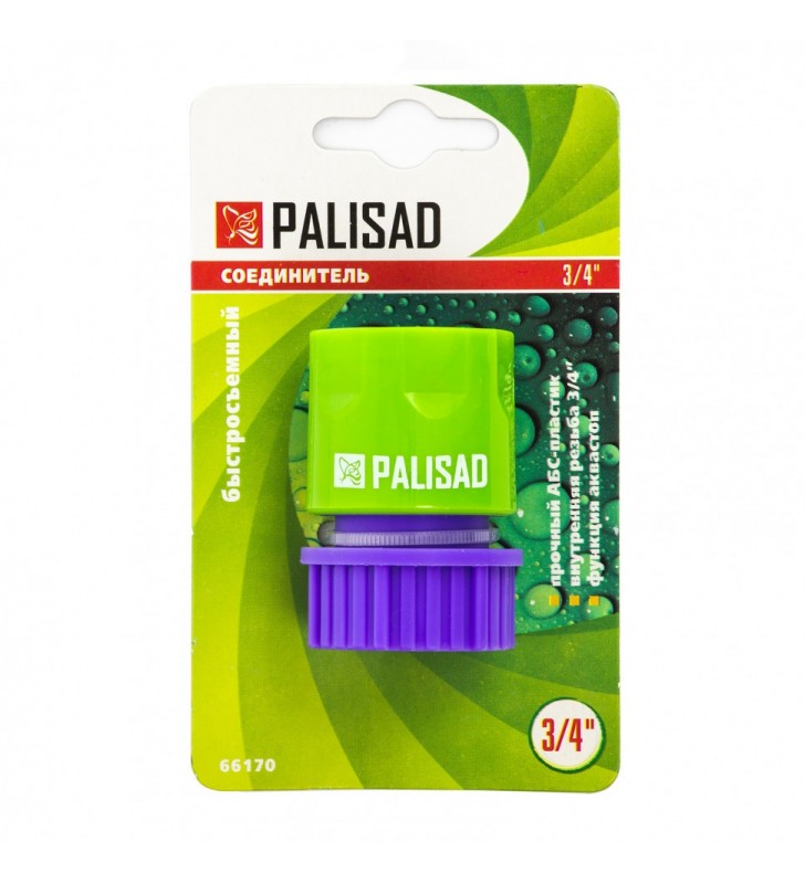Szybkozłączka z gwintem zewnętrznym i zaworem "autostop" wykonana z odpornego na uderzenia tworzywa ABS. Średnica osadzenia do kranu 3 4". Element przyłączeniowy systemu nawadniania jest kompatybilna ze wszystkimi adapterami, przejściówkami-złączami, trójnikami, a także z zestawami systemu nawadniania Palisad.