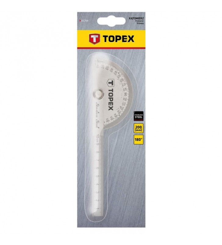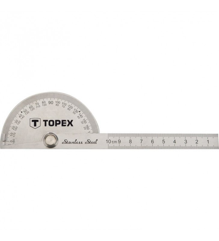 Kątomierz TOPEX z linijką o długości 100 mm. Przyrząd pomiarowy bardzo przydatny przy pracach mechanicznych oraz podczas majsterkowania. Wykonany z wysokiej jakości stali nierdzewnej.