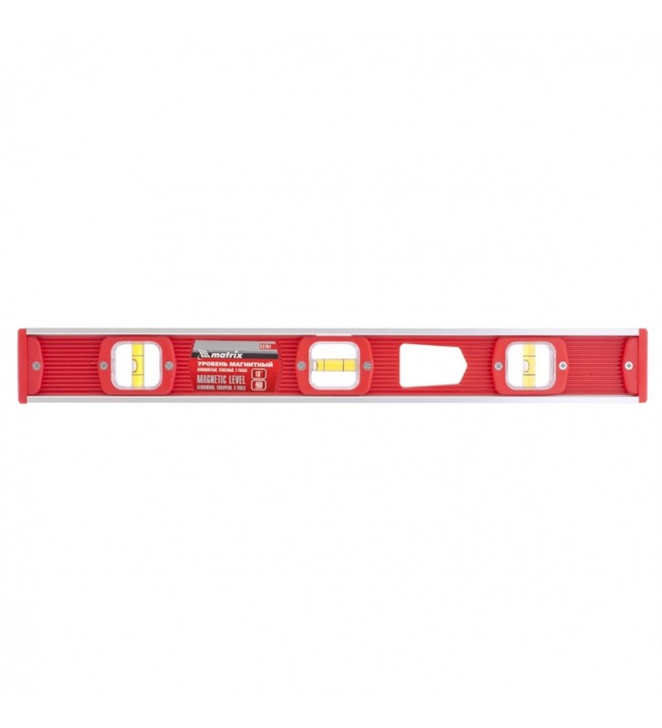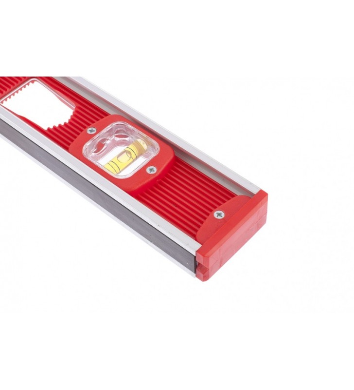 Korpus poziomicy wykonany jest z odpornego na uderzenia tworzywa sztucznego ze szkieletem aluminiowym. W korpusie poziomicy wbudowany jest magnes do mocowania na powierzchniach metalowych. Model ma trzy oczka akrylowe do kontroli odchyleń od poziomu i pionu. Dokładność pomiaru 1 mm m (0,057 stopni).