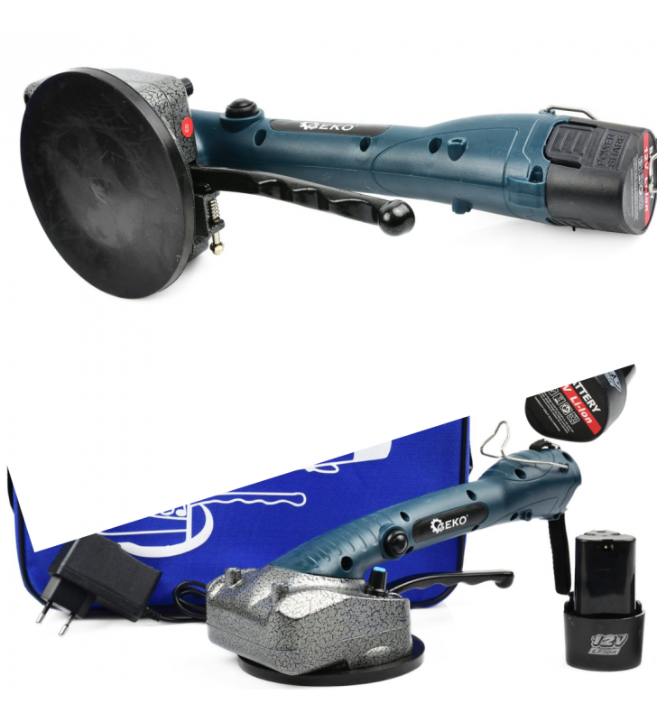 Akumulatorowa przyssawka wibrująca do układania płytek. Przeznaczona do przenoszenia i wibrowania masy klejowej między płytką, a podłożem w celu równomiernego rozprowadzenia kleju oraz usunięcia pęcherzyków powietrza. Stosowanie przyssawki wibrującej zapobiega powstawaniu pustych przestrzeni między płytką i podłożem, dając najtrwalsze zespolenie płytki z podłożem. Urządzenie posiada pokrętło z 10-stopniową regulacją siły wibracji. Solidna przyssawka umożliwia podniesienie płytki o wymiarach maksymalnych 100x100cm.