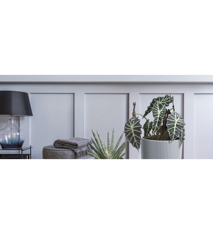 Designerska doniczka o nowoczesnym cylindrycznym kształcie zwężonym u podstawy. Jej kształt dodaje harmonii współczesnym aranżacjom, a  stonowane kolory i eleganckie proporcje sprawiają, że będzie doskonale pasować do wielu współczesnych wnętrz, szczególnie tych urządzonych w stylu boho.