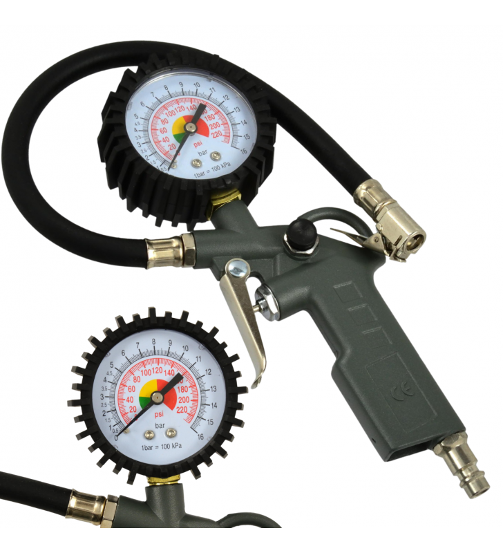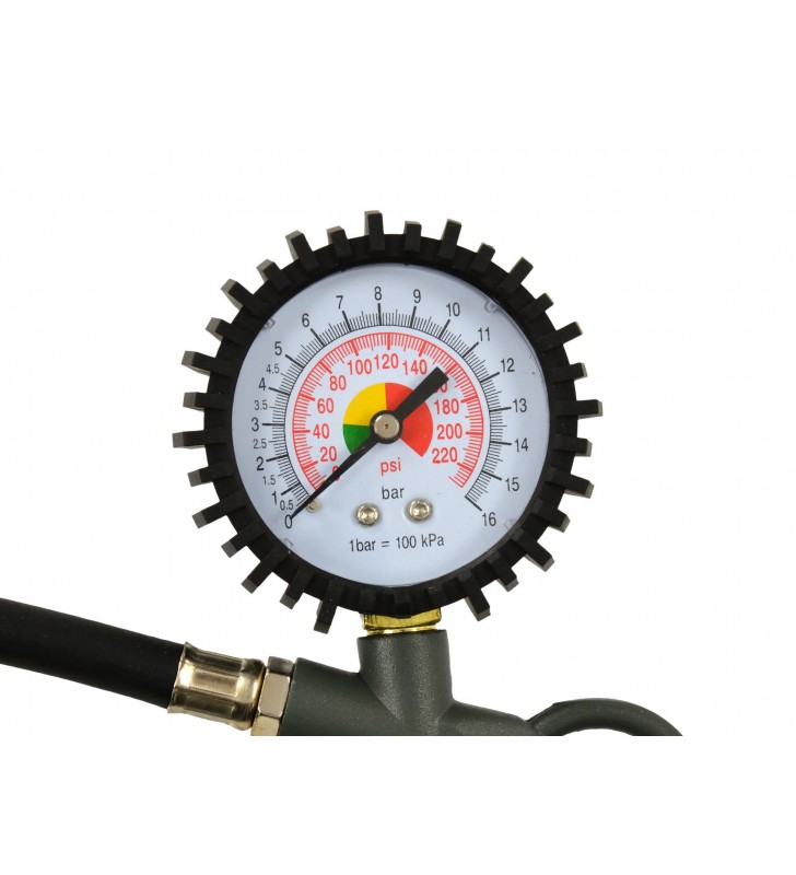 Czytelny manometr, solidna i sprawdzona końcówka do pompowania oraz jedna jednostka ciśnienia- bar pozwalają na bezproblemowy odczyt ciśnienia oraz szybkie napompowanie koła. Dodatkowo pistolet posiada uchwyt do zawieszenia.