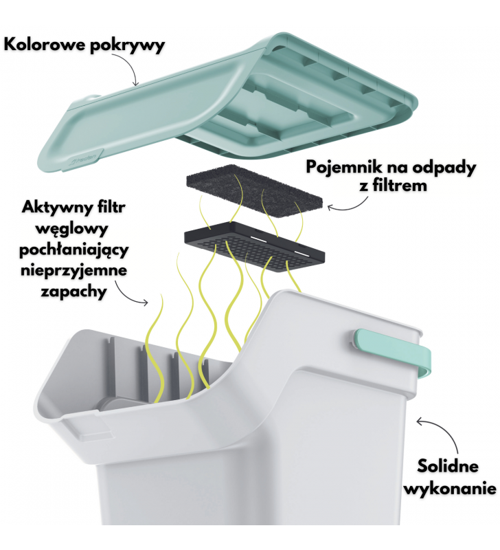 - Produkt wraz z aktywnym węglowym filtrem pochłaniającym nieprzyjemne zapachy!