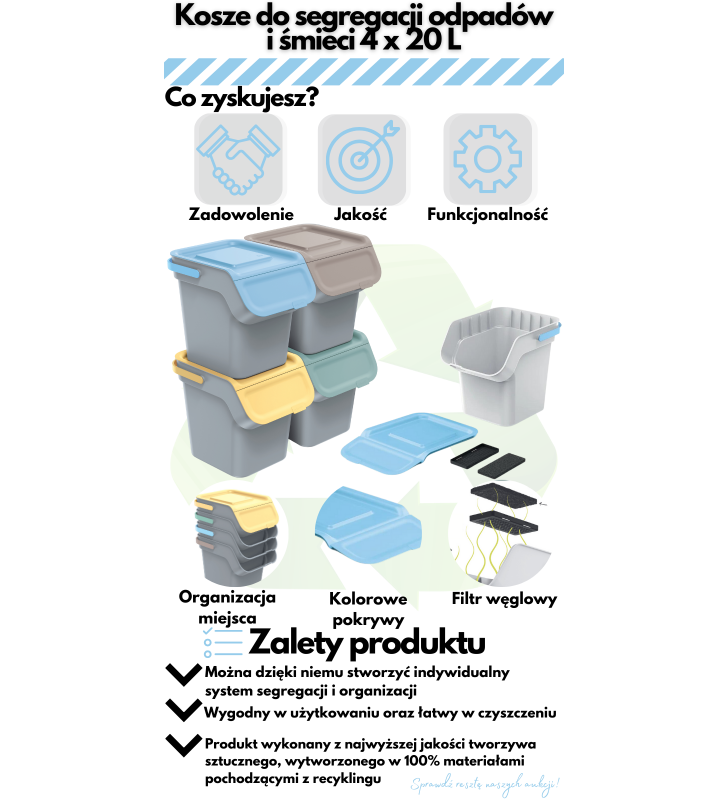 - Produkt wykonany z najwyższej jakości tworzywa sztucznego, wytworzonego w 100% materiałami pochodzącymi z recyklingu