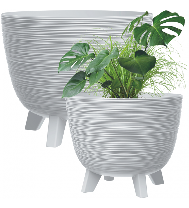 Doniczka Furu charakteryzuje się klasyczną formą z zaokrąglonym dnem uniesionym na nóżkach. Jej pofalowana powierzchnia oraz stonowane kolory sprawiają, że idealnie wpasuje się w wiele współczesnych aranżacji, wprowadzając designerski akcent do wnętrz, tarasów lub ogrodów. Doniczki Furu poszerzają możliwości ich zastosowania w różnych aranżacjach, pozwalając na stworzenie bardziej urozmaiconych kompozycji roślinnych.