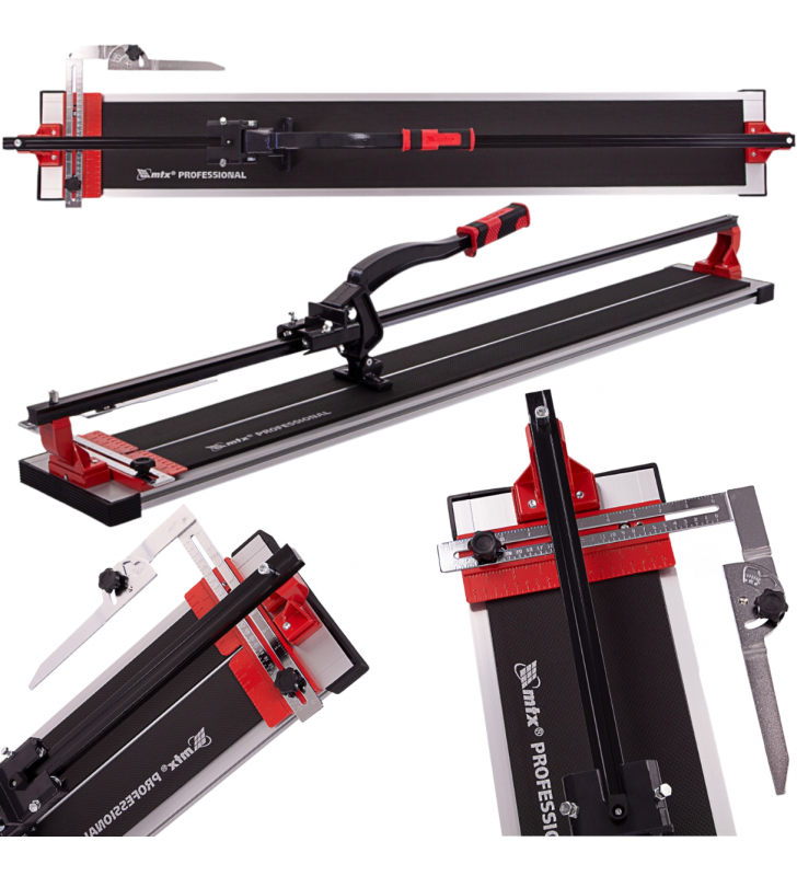 Przecinarka do płytek MTX PROFESSIONAL jest w stanie ciąć płytki o długości do 1200 mm i grubości 16 mm, aby nadać im wymagane wymiary. Potężny separator radzi sobie z cięciem nie tylko płytek ceramicznych, ale także porcelanowych. Przemyślana konstrukcja umożliwia wyłamanie w dowolnym miejscu na powierzchni płytki. Specjalny stop i pokrycie listwy zapewnia niezawodną przyczepność mechanizmu kulkowego z szyną i eliminuje poślizg wózka przy pracy.