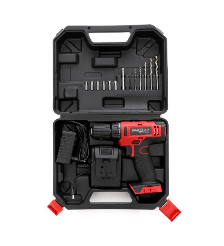 Wiertarko-wkrętarka akumulatorowa marki Kraft&Dele o symbolu KD1566 to profesjonalne urządzenie, wyróżniające się ergonomiczną budową, sprawdzoną i solidną konstrukcją oraz wysoką wytrzymałością.