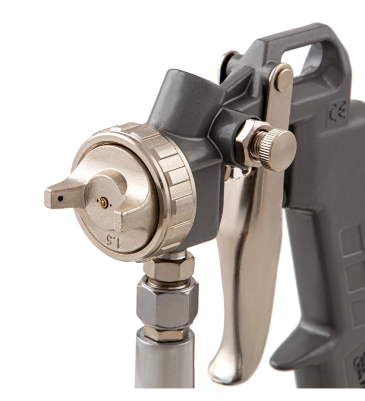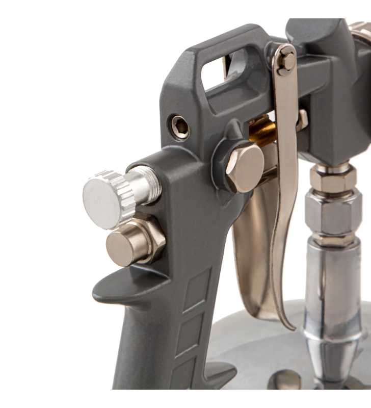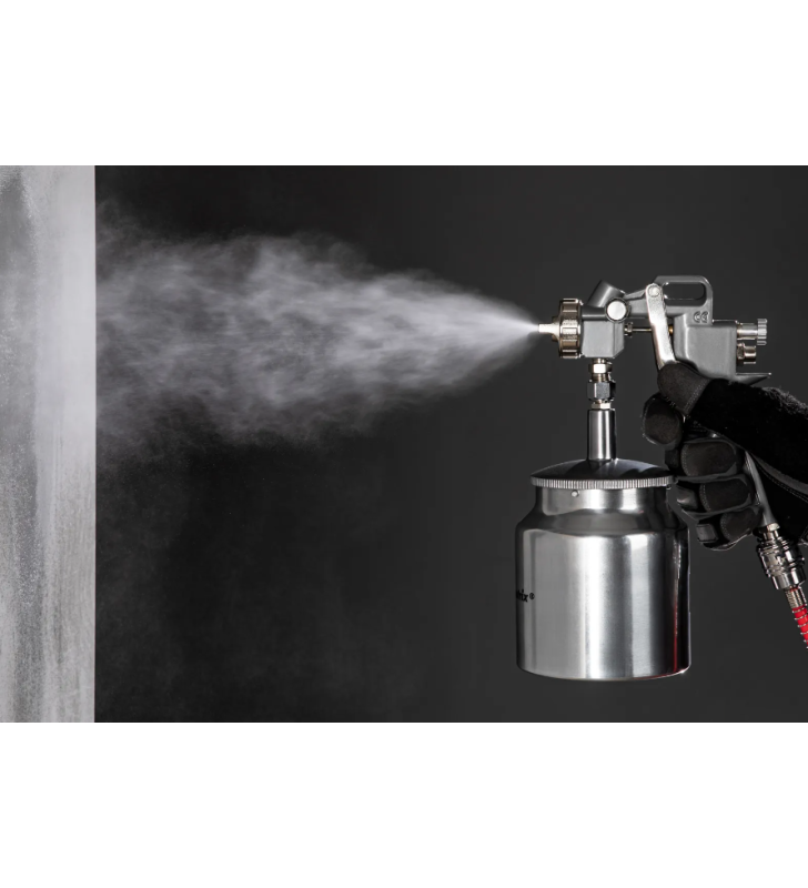 - NIŻSZE POŁOŻENIE ZBIORNIKA - pistolet natryskowy można ustawić na powierzchniach poziomych, a także nie zasłania widoku podczas pracy