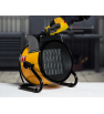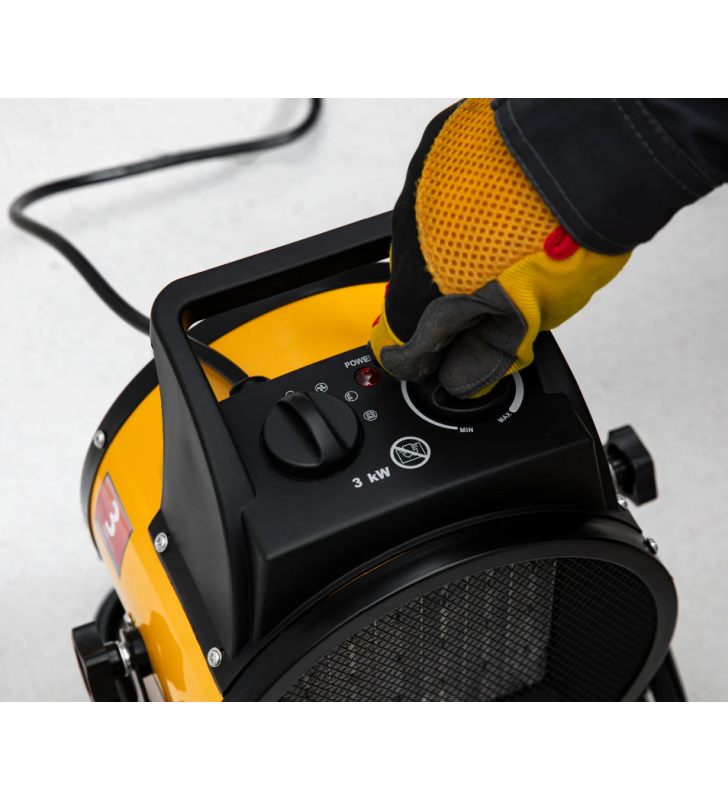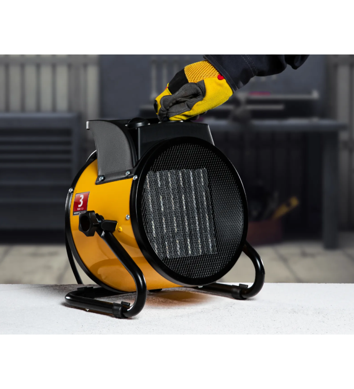 Nagrzewnica oferowana przez nas została wyposażona w grzałkę ceramiczną, która pobiera moc 0,025, 1,5 lub 3 kW w zależności od ustawionego trybu. Nadaje się do użytku domowego i półprofesjonalnego. Za jego pomocą można ogrzać pomieszczenie do 40 metrów kwadratowych lub zdalnie osuszyć powierzchnię po wykończeniu (ściany otynkowane i pomalowane, jastrychy). Ponadto urządzenie może być używane jako wentylator w upale. Ceramiczny element grzejny nie wysusza powietrza i nie wydziela szkodliwych substancji, dzięki czemu termowentylator jest bezpieczny dla ludzi i zwierząt.