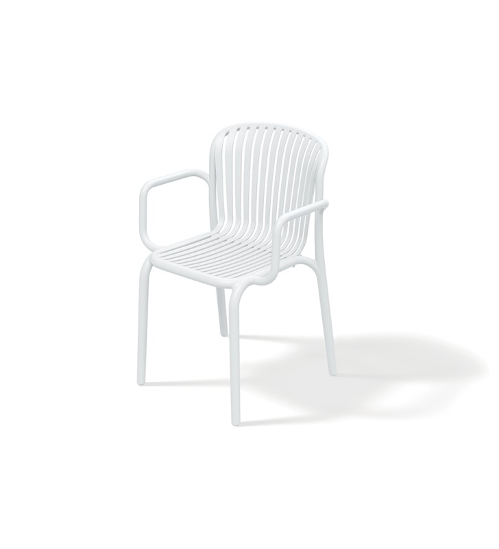 Krzesło zi podłokietnikami Serenite to elegancki i funkcjonalny produkt, idealny do każdego wnętrza. Jego nowoczesny design oraz biały kolor wprowadzą świeżość do Twojego domu lub biura. Krzesło wykonane jest z wysokiej jakości tworzywa sztucznego, co zapewnia trwałość i łatwość w utrzymaniu czystości.